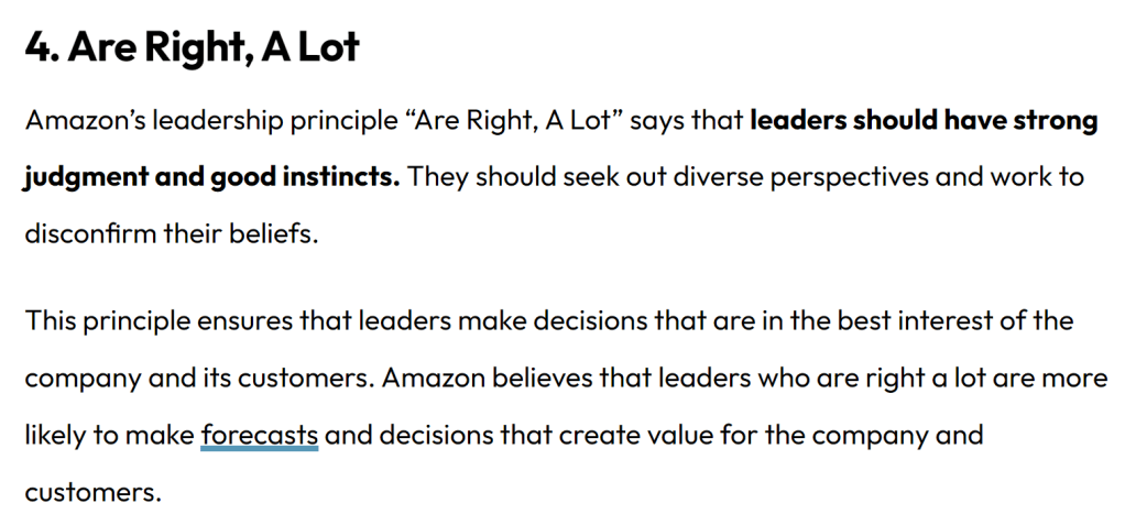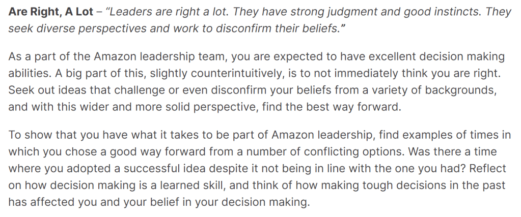 một trong những thứ đó là 16 nguyên tắc lãnh đạo (leadership principles) – những nguyên tắc này dẫn dắt chúng mình, giúp chúng mình đặt ra các ưu tiên trong công việc dựa trên các nguyên tắc ấy.